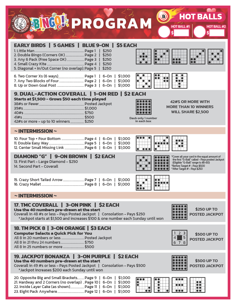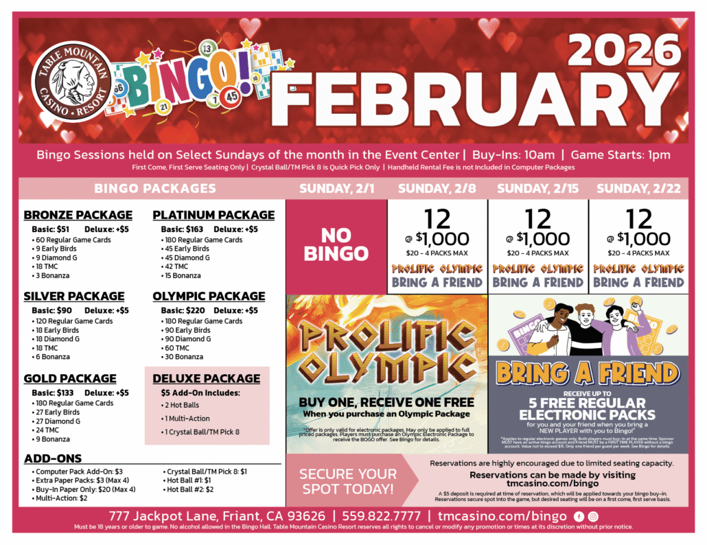 Please visit tmcasino.com/bingo for the full calendar, list of packages and specials available.